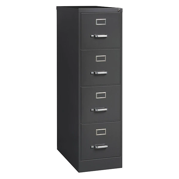 Vertical File Cabinet, File Cabinet Type Vertical, Series HL8000, File Size Letter, Number of Drawers 4, Overall Width 15 in, Overall Height 52 in, Overall Depth 26 1/2 in, Color Charcoal, Material Steel, Label Holder Included Yes, Lock Included Yes, Assembled, Standards ANSI/BIFMA, TAA Compliant