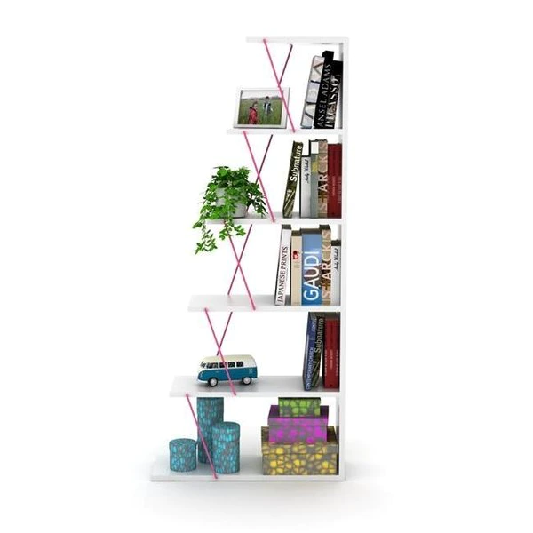 Do you have books and ornaments all around the place in your home Are you tired of losing them and seeing them in places they don't belong Here is your saver. With this bookcase. everything will be in its place. It is easy to setup. You can adjust the shelves as you wish to create the space that you need for your staff.FeaturesDesigned to make you happyEach piece is carefully crafted with hardworking materials and durable finishes that will bring years of enjoymentEasy assemblySpecificationsColor: White & PinkWeight: 29 lbs