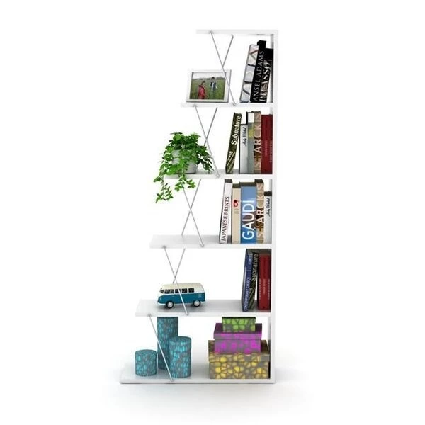 Do you have books and ornaments all around the place in your home Are you tired of losing them and seeing them in places they don't belong Here is your saver. With this bookcase. everything will be in its place. It is easy to setup. You can adjust the shelves as you wish to create the space that you need for your staff.FeaturesDesigned to make you happyEach piece is carefully crafted with hardworking materials and durable finishes that will bring years of enjoymentEasy assemblySpecificationsColor: White & ChromeWeight: 29 lbs