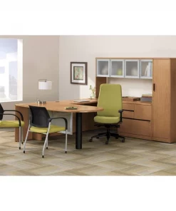 Durable finish and high-pressure laminate help resist damage. 10" modesty panel permits easy access to electrical outlets. Rounded corners and waterfall edges for a smooth, clean appearance. Use with single pedestal desk, desk shell or peninsula desk (sold separately) to create an "L" workstation.