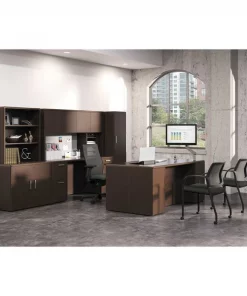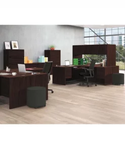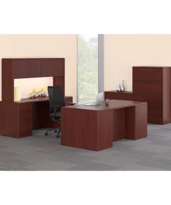 Durable finish and high-pressure laminate help resist damage. 10" modesty panel permits easy access to electrical outlets. Rounded corners and waterfall edges for a smooth, clean appearance. Use with single pedestal desk, desk shell or peninsula desk (sold separately) to create an "L" workstation.