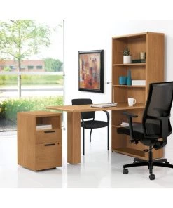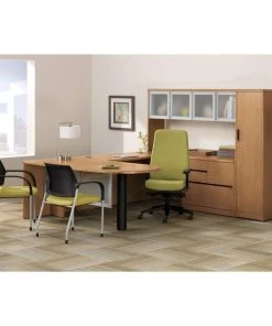 A modular management solution that combines stylish profiles and elegant accents with top-grade fit and finish. Abrasion- and stain-resistant high-pressure laminate with elegant hardwood trim. Cord routing notch in brace panel. Not freestanding. Creates "U" workstation with Bridge and Credenza; creates "L" workstation with Return.