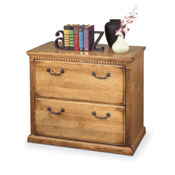 Huntington Oxford is a contemporary furniture design built with hardwood solids. Vertical fluting and dentil molding add character and aesthetic appeal. The Huntington collection incorporates a highly detailed finish with hand-applied distressing. This distressing includes rasping, wear sanding, dry brushing and pin holes. Distressed elements create texture and depth and create the worn appearance of fine furniture that has withstood the test of time Hand applied distressing also makes each item unique and like no other. Huntington Oxford is a great addition to any home and will surely last for generations to come. The lateral file includes two letter/legal sized file drawers and the top drawer locks for security. Arrives fully assembled.