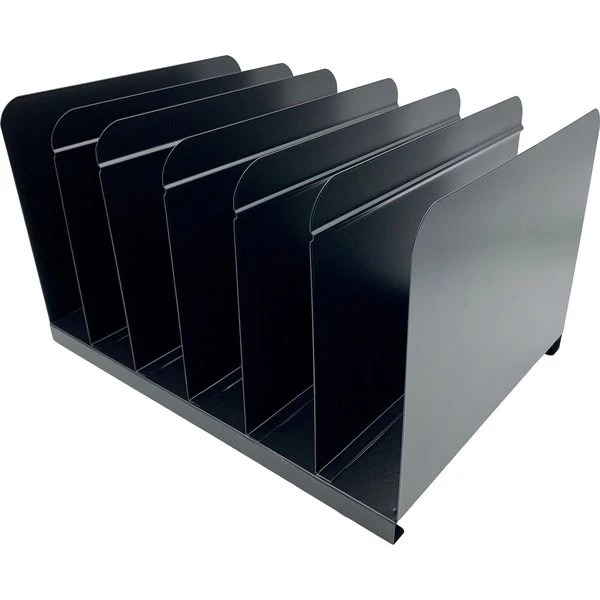 Keep you books and important paperwork organized with this contemporary, Book Rack. Place on the surface of your desk for easy access. Each vertical slot offers a 2-1/2" gap to store your books and paperwork. Rack is made of long-lasting, durable steel. Use alone or mixed and matched with other coordinating Huron accessories.