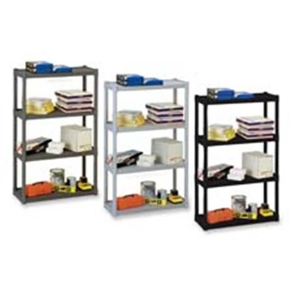 Four-shelf Open Storage System offers sturdy storage space. Heavy-duty upright offers increased stability and holds 75 lb. per shelf when evenly distributed. Storage system won't scratch or dent. Easily snap it together. Storage system contains 35 percent recycled material.