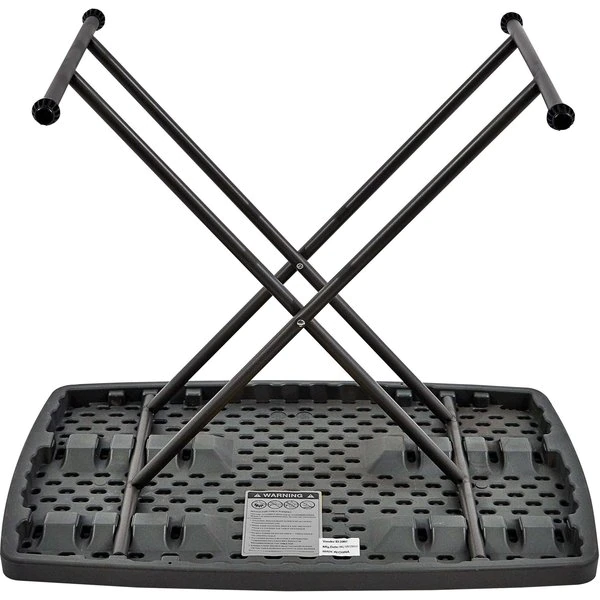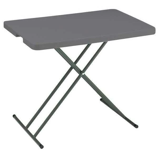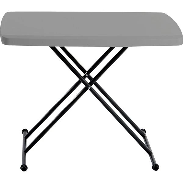 Folding Table, Surface Material Blow Molded Polyethylene, Rectangle, Width 20 in, Length 30 in, Height 29 in, Tabletop Color Family Gray, Tabletop Color Charcoal, Frame Color Charcoal, Assembled/Unassembled Assembled, Frame Material Steel, Edge Color Charcoal, Edge Type Bullnose, Leg Type Scissor, Table Material Polyethylene, Top Thickness 2 in, Series IndestrucTable TOO (TM), Load Rating 25 lb, Standards ANSI/BIFMA, Includes Heavy Duty Nonmarring Protective Foot Cap
