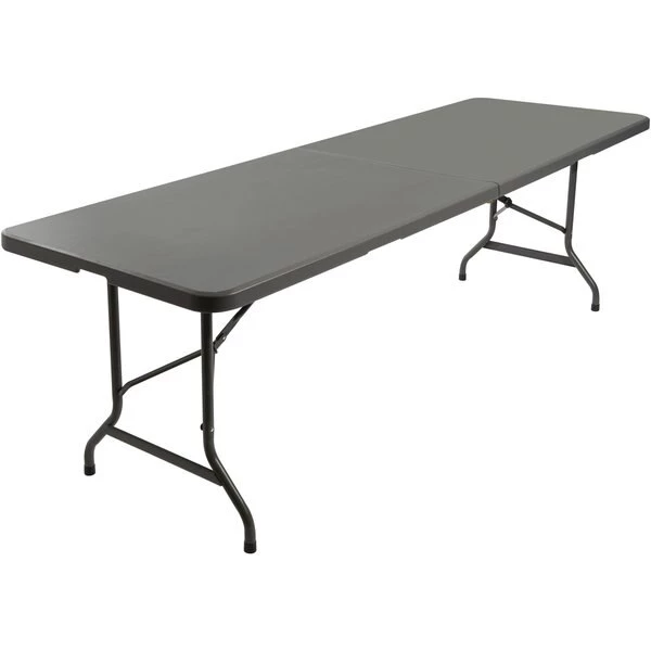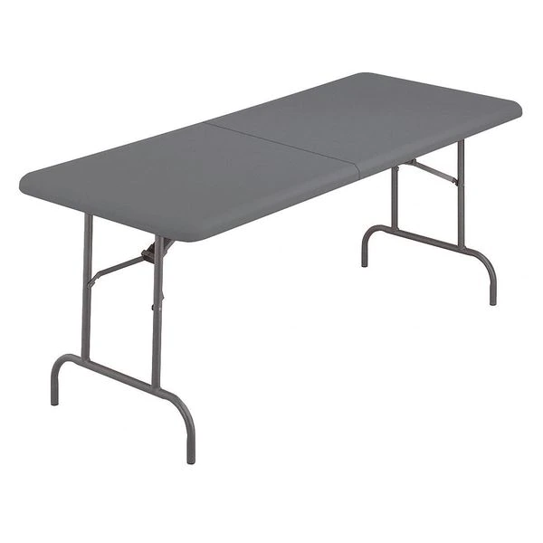 Folding Table, Surface Material Blow Molded Polyethylene, Rectangle, Width 30 in, Length 72 in, Height 29 in, Tabletop Color Family Gray, Tabletop Color Charcoal, Frame Color Charcoal, Assembled/Unassembled Assembled, Frame Material Steel, Edge Color Charcoal, Edge Type Bullnose, Leg Type Wishbone, Table Material Polyethylene, Top Thickness 2 in, Series IndestrucTable TOO (TM), Load Rating 250 lb, Standards ANSI/BIFMA, Includes Heavy Duty Nonmarring Protective Foot Cap