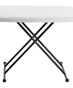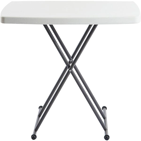 Adjustable Folding Table, Surface Material Blow Molded Polyethylene, Rectangle, Width 20 in, Length 30 in, Height 25 in to 28 in, Tabletop Color Family Gray, Tabletop Color Platinum, Frame Color Charcoal, Assembled/Unassembled Assembled, Frame Material Steel, Edge Color Platinum, Edge Type Bullnose, Leg Type Scissor, Table Material Polyethylene, Top Thickness 2 in, Series IndestrucTable TOO (TM), Load Rating 25 lb, Standards ANSI/BIFMA, Includes Heavy Duty Nonmarring Protective Foot Cap