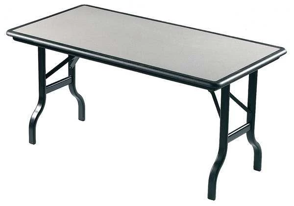 Folding Table, Surface Material Blow Molded Polyethylene, Rectangle, Width 30 in, Length 72 in, Height 29 in, Tabletop Color Family Gray, Tabletop Color Granite, Frame Color Black, Assembled/Unassembled Assembled, Frame Material Steel, Edge Color Black, Edge Type Bullnose, Leg Type Wishbone, Table Material Laminate Styrene, Top Thickness 2 1/2 in, Series IndestrucTable (TM), Load Rating 1200 lb, Standards ANSI/BIFMA, Includes Heavy Duty Nonmarring Protective Foot Cap