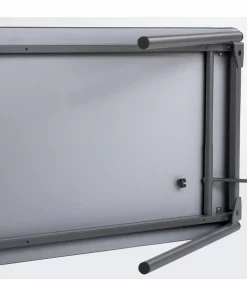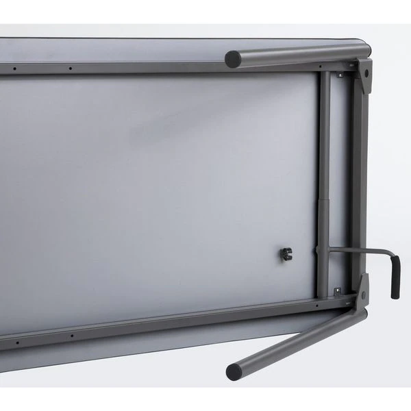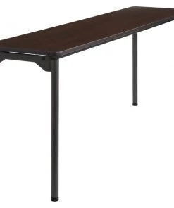 Folding Table, Surface Material Thermal Fused Melamine Laminate, Rectangle, Width 18 in, Length 72 in, Height 30 in, Tabletop Color Family Woodgrain, Tabletop Color Walnut, Frame Color Charcoal, Assembled/Unassembled Assembled, Frame Material Steel, Edge Color Charcoal, Edge Type T-Molded, Leg Type Straight, Table Material Particle Board Substrate, Top Thickness 3/4 in, Series Maxx Legroom(TM), Load Rating 600 lb, Standards ANSI/BIFMA, Includes Heavy Duty Nonmarring Protective Foot Cap