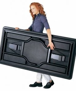 Durable folding table is easy to transport, set up and store. The wear-resistant, rectangular top features a sealed underside to prevent moisture absorption. The 3/4" thick, melamine top also offers an oak laminate to match your stylish decor. Full-perimeter, steel skirt support with plastic corners protects the surface when stacking. 1" diameter, heavy-gauge steel legs feature heavy-duty, protective foot caps and gravity lock for stability. Multipurpose folding table also features a black vinyl, T-mold edge. Weight capacity is 500 lb. evenly distributed.
