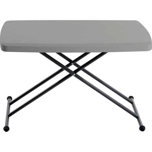 Personal table is perfect for many different uses. Lightweight, durable table has a high-density, blow-molded polyethylene top. The table adjusts to two different heights: 25" or 28" high.
