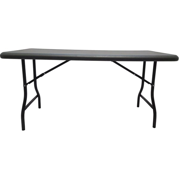 Folding table is made for heavy-duty use indoors or outdoors yet is 30 percent lighter than standard folding tables. Capacity is 2,000 lb. evenly distributed. 2" tabletop is made of durable, blow-molded, high-density polyethylene that is dent-resistant and scratch-resistant. Tubular legs are made of heavy-gauge steel with a powder-coat finish. 1" round legs fold into recessed cavities beneath the table. Folding table is designed to nest with other Iceberg IndestrucTable Too tables when stacking to allow maximum storage capacity.