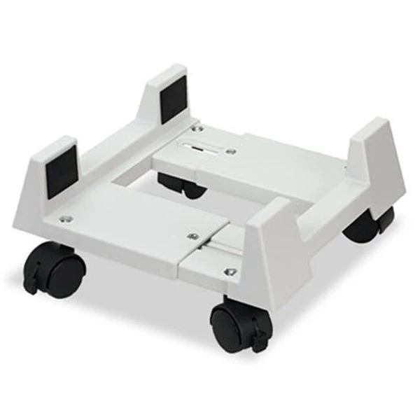 Nonskid padding holds CPU in place. Durable construction ensures strength and stability. Wheels enable easy mobility. Color: Light Gray; Material: High-Impact Plastic; Caster/Glide/Wheel: Four Swivel Casters (2 Locking).