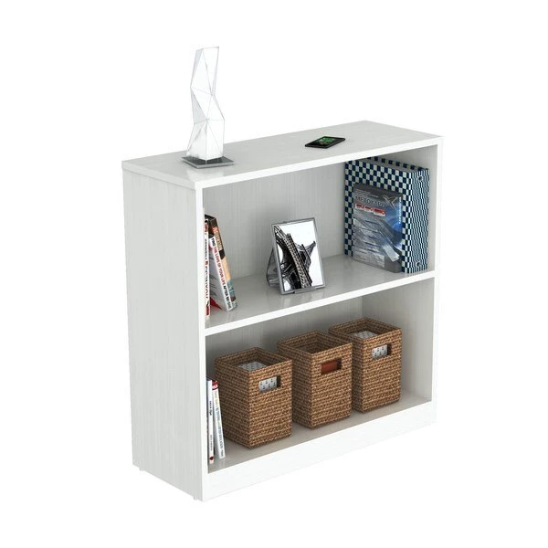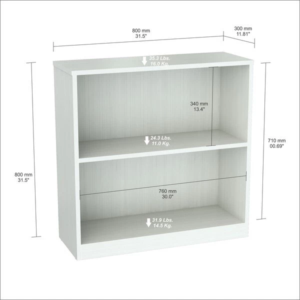 Laura Bookcase Collection by Inval® finished in a rich “Washed Oak” laminates in durable melamine which is stain, heat and scratch resistant. Constructed from manufactured wood. The unit has a multi-functional modern design that is an excellent choice for your home office or office. It can be used as a standalone unit or as a hutch for other INVAL units (sold separately). The two shelves can accommodate books and accessories and sits on four plastic sliders for ease moving when necessary.