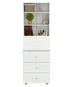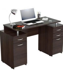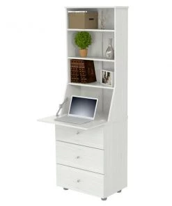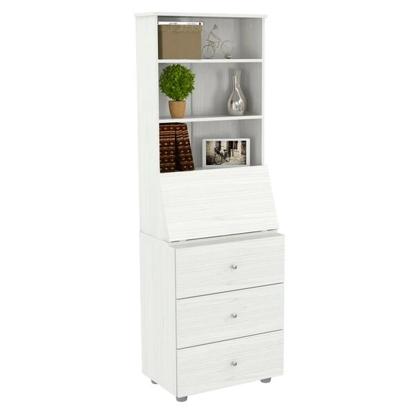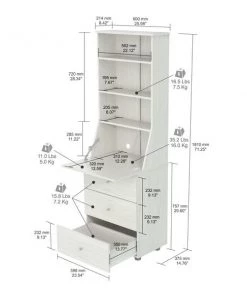 Computer/Credenza Work center by Inval® finished in a rich “Washed Oak” laminates in durable melamine which is stain, heat and scratch resistant. Constructed from manufactured wood. This unit offers an ample hidden work surface which folds up to change the unit’s look from an office space to a home credenza and blends traditional with classis style. The unit features hidden storage behind the drop down desktop, three (3) large box drawers with metal drawer glides that can accommodate your office supplies and other home storage items. The attached hutch has three (3) shelves and allows you to display books, binders and other decorations to match your home décor. Our unit is equipped with anti-tilt hardware.