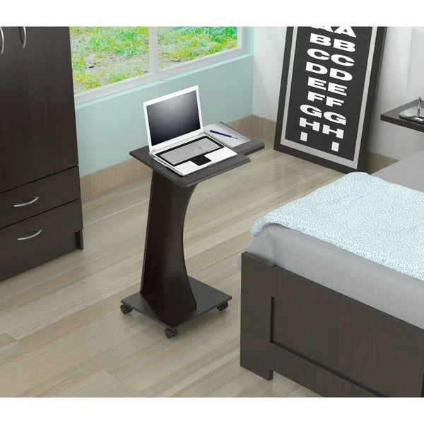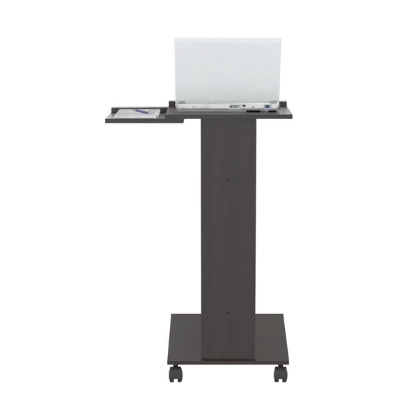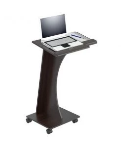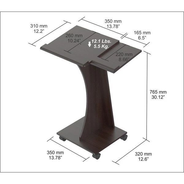 Rolling Laptop Cart by Inval® finished in a rich “Espresso” laminates in durable melamine which is stain, heat and scratch resistant. Constructed from manufactured wood. This unit has a functional modern design and is an excellent choice for any home office or office. It sits on four casters for easy mobility, which lock to secure the laptop card in place. It has two separate work surfaces and can be assembled for use with the mouse on left or right surface. Weight capacity 12.1 Lbs.