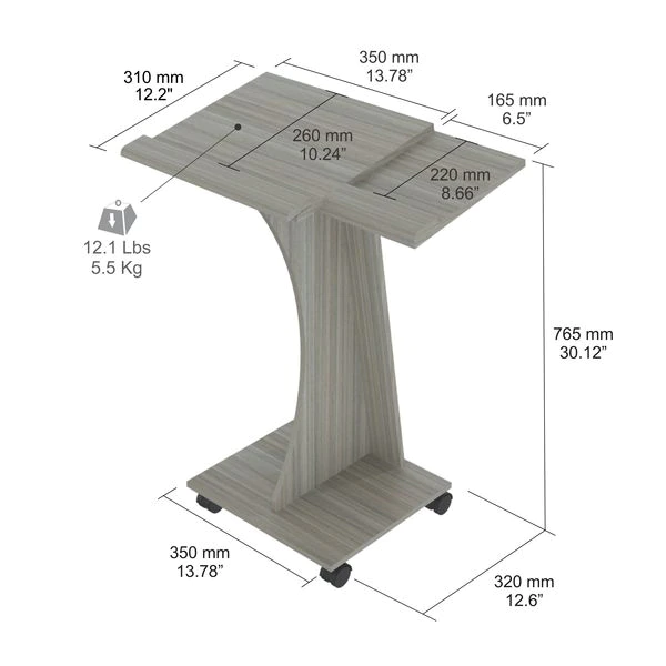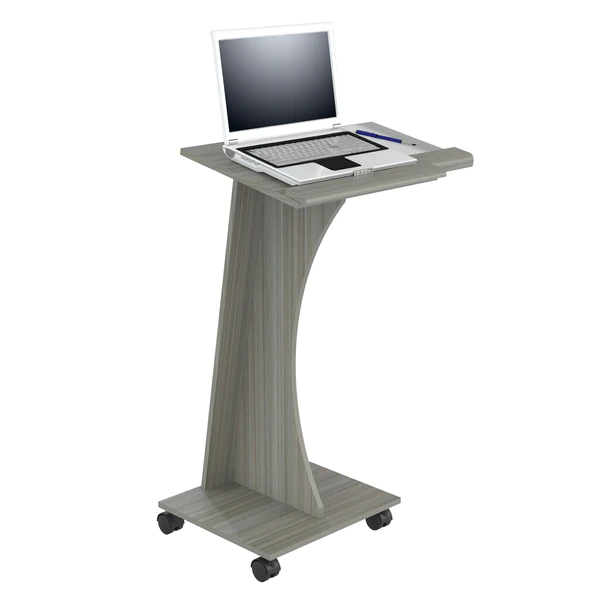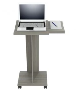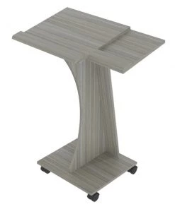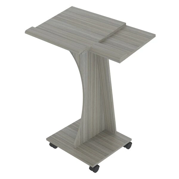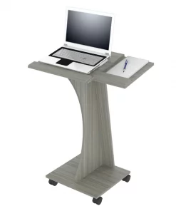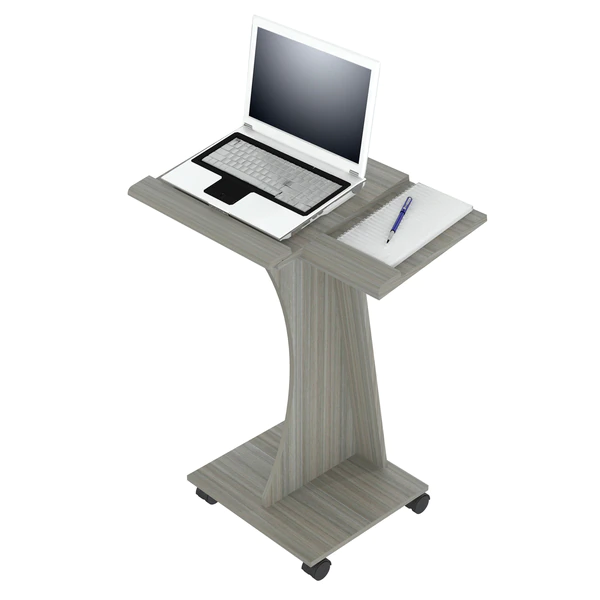 Rolling Laptop Cart by Inval® finished in a rich “Smoke Oak” laminates in durable melamine which is stain, heat and scratch resistant. Constructed from manufactured wood. This unit has a functional modern design and is an excellent choice for any home office or office. It sits on four casters for easy mobility, which lock to secure the laptop card in place. It has two separate work surfaces and can be assembled for use with the mouse on left or right surface. Weight capacity 12.1 Lbs.
