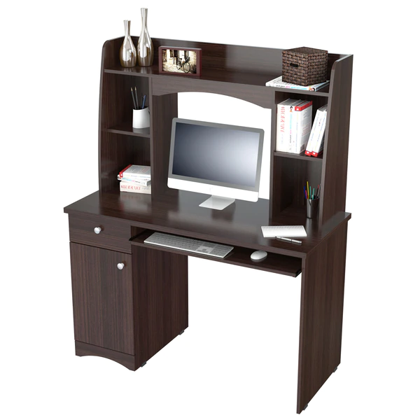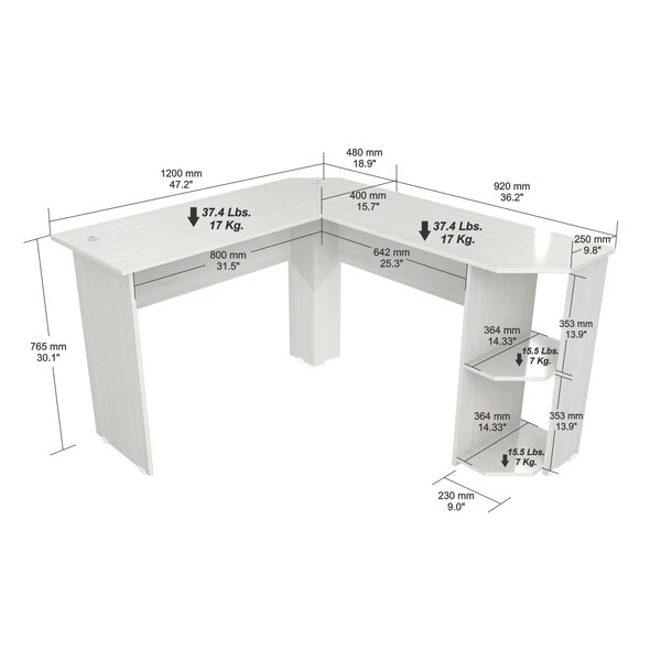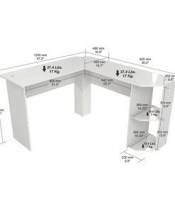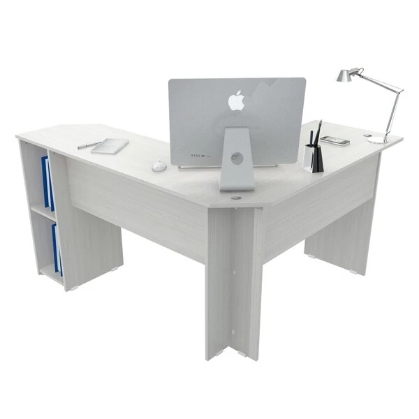Merlin L Shaped Work Center Collection by Inval® finished in a rich “Washed Oak” laminates in durable melamine which is stain, heat and scratch resistant. Constructed from manufactured wood. . With large dual desktops, you have an abundance of room on which to place your laptop, tablet, documents, office supplies and any other décor to add a personal touch. The desk is equipped with a cable management pass-through to keep all cords organized. The design without center obstacles makes it simple to move from side to side enabling you to work in an effortlessly manner. Both the laminates and design make it ideal for staging and decorating your home office or office.