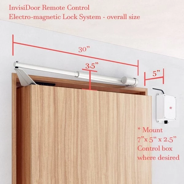 The InvisiDoor Motorized Latch system adds a unique touch to our already market leading Invisible Door system. From anywhere in your room surprise your guests by opening your InvisiDoor with the touch of a button!• Motorized latch works with both inswing and outswing applications• For an INSWING door application, the maximum open angle is 93 degrees• For an OUTSWING door application, the maximum open angle is 86 degrees• Compatible and Engineered for InvisiDoor only• Motorized latch will NOT work with other latches• Review technical data guide and installation instructions for addtional detailed information