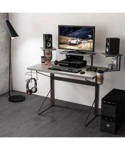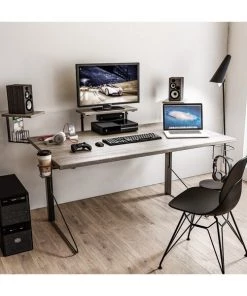 Who says you can't elevate your gaming desk with the right materials? The stylishness of the Carnegie Gaming Desk is complemented by its function for today's modern gaming needs. The smart design is made specifically for all your gaming swag so you can focus on that epic battle. Featuring a smart mix of wood veneer and black metal, the desk is totally equipped for your geekery, with built-in platforms for headphones, speakers, controllers and even a cup holder. The wood veneer desk top has ample room for a keyboard, laptop and peripherals–and there's no need for a monitor stand because there's already an adjustable one built in. Best of all, you don't even have to be a gamer to enjoy this desk that has a place for everything.