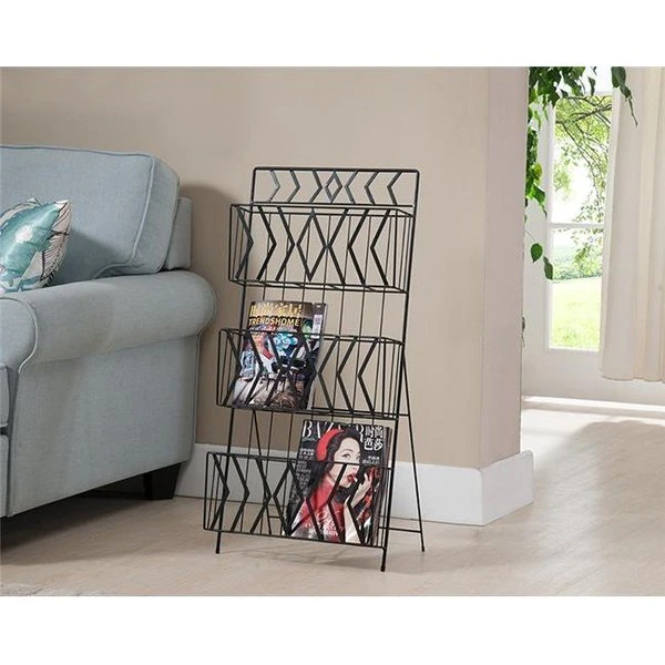 FeaturesShowcase your magazine collection on this one of a kind magazine rackThis modern magazine rack will give style to any settingsIt is made with sturdy metal and will easily decorate any spaceSpecificationsFinish: BlackDimension: 42 H x 18 W x 16 D in.Weight: 9.8 lbs
