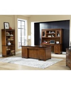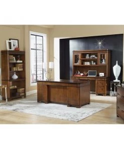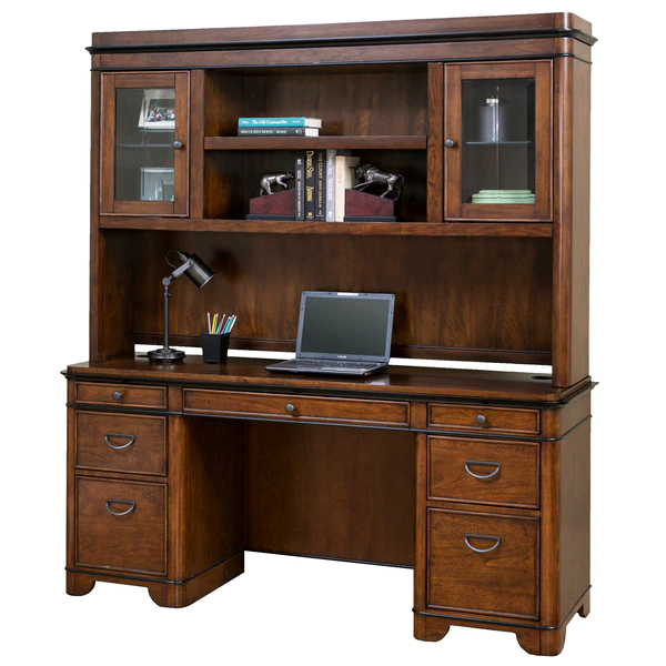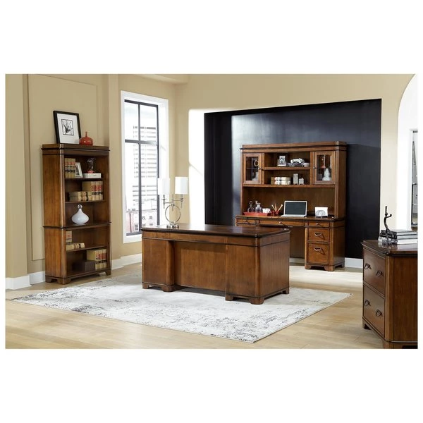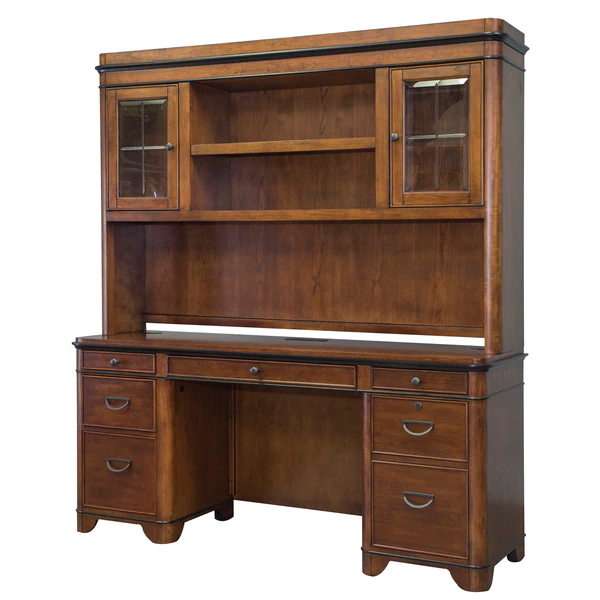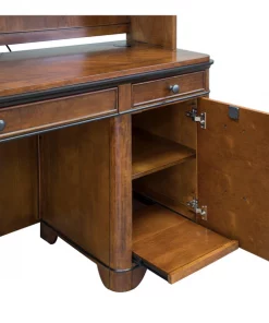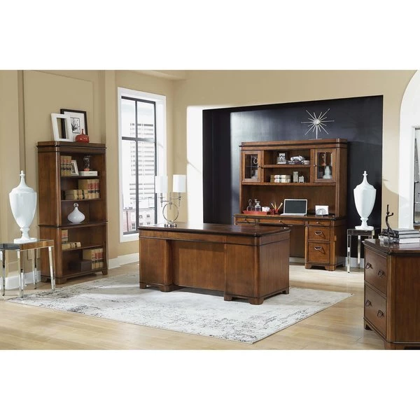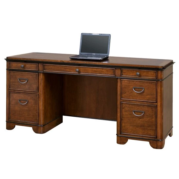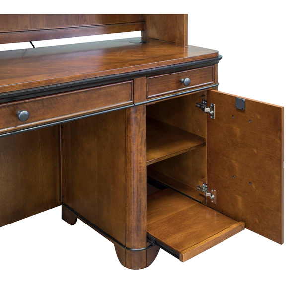 This Kensington credenza table can be a great addition to your private study. It is bathed in a rich fruitwood finish which gives the credenza an elegant and pleasing appeal. Apart from the utility and file drawers, this credenza also features a pull-out printer shelf behind one of the faux drawers and a power center to charge your phone, laptop or any other electronic device. Chic yet practical, this credenza is perfect for the modern room decor.