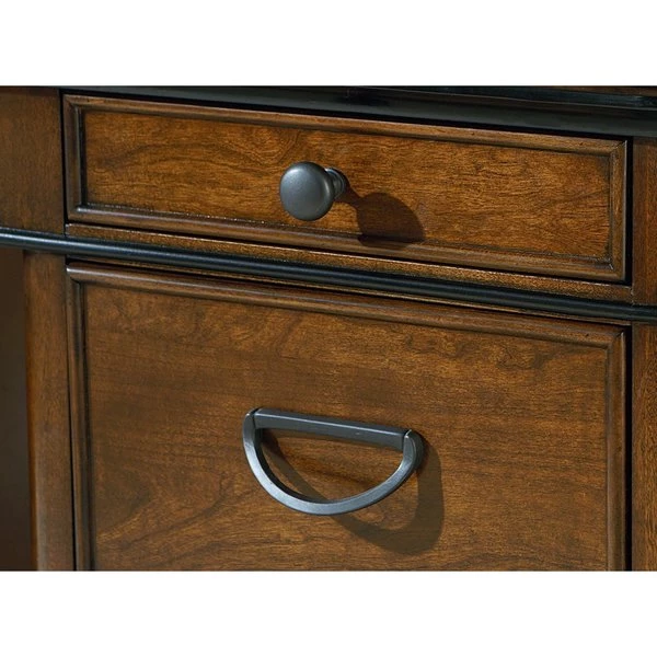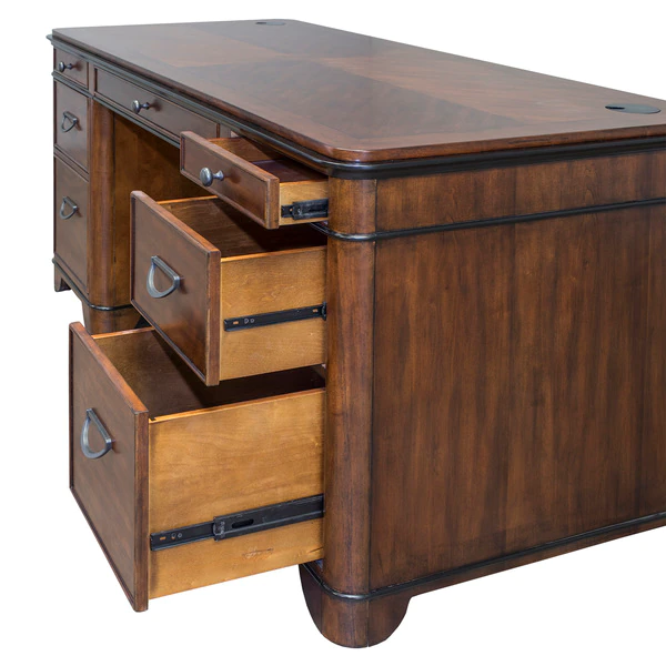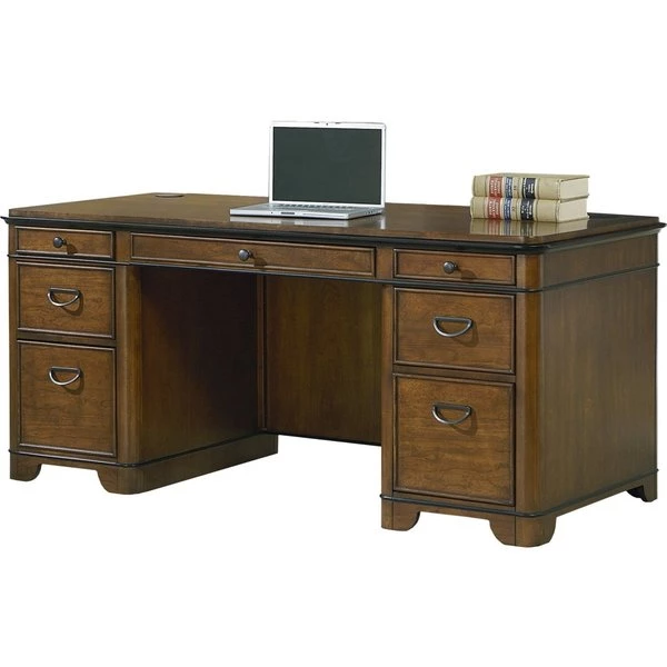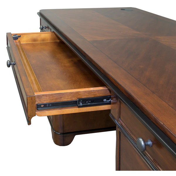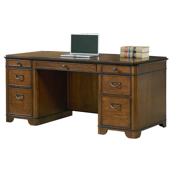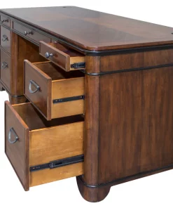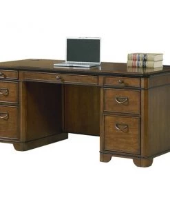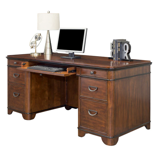 This executive desk is a spacious working platform for all your office requirements. Its polished look in a warm fruitwood finish creates a posh and sophisticated appeal. This desk is equipped with numerous shelves for books, files, and other office essentials. It is also fitted with a computer keyboard tray and drawers for storing stationary items. A must-have furniture accent for your office or living room, this executive desk gives your home beautiful, modern feel.