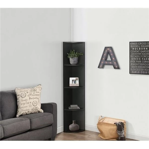 Orion 4 Tier Storage Shelves Corner Bookcase. Black Wood. Contemporary. This Orion Corner Bookcase will help you stash your favorite collectibles without compromising your valuable space by offering plenty of storage for your favorite novels while taking up as little space as possible. The distinctive color will help you with your storage and decorate your home with class. Update hidden corners of your home with this Orion Corner Bookcase. Crafted from laminated wood. it consists of four-tiered open shelves that are perfect for storing or displaying decorative accents. Designed with precision. this functional unit will not only maximize your storage solution but will give your room an elegant statement as well. SpecificationsFinish: BlackMaterials: Laminated WoodDimension: 10.5"W x 10.5"D x 60"HWeight: 29 lbs