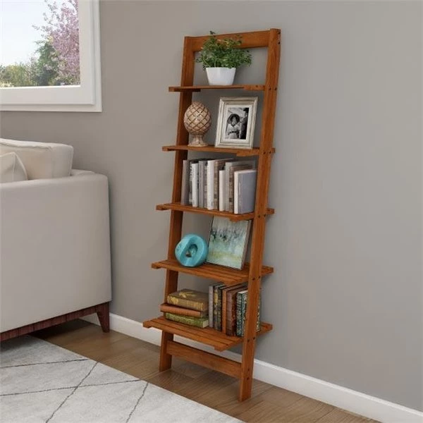 This 5-tier Ladder Bookshelf by Lavish Home is perfect for all your decorating and storage needs in your living room. bathroom. bedroom and kitchen. This lightweight shelf conveniently leans against any wall. is easy to move and will look great in any room of your house. The cherry finished wood display unit helps organize your belongings. while maintaining a stylish appearance. FeaturesIncludes all hardware and tools for assembly5 Tier Ladder Bookshelf Leaning Decorative Shelves for Display Wood Accent Home DecorStylish And Functional:The wood leaning ladder shelf matches any decor and is the perfect touch of rustic decor in any home. This bookshelf is ideal for books. decorative pieces. picture frames. magazines. plants. and more.Five-Tier Bookshelf:This home decor bookcase has five levels of shelves that can hold any decorations and storage items in an attractive manner. This tall shelving unit can be used to organize and neatly display your belongings.Lean Against The Wall:This leaning bookshelf attaches to most walls and its small footprint is ideal for apartments. tiny homes and dorm rooms. Turn empty wall space into a focal point in any room of your home or office.Lightweight And Sturdy:This lightweight shelving unit makes the storage and rearrangement process uncomplicated and painless. The solid wood construction increases durability and longevity of this decorative shelf.SpecificationsWood Finish: CherryMaterial: WoodWide Shelves: 15"Distance Between Shelves: 8"Dimension: 11.5" L x 16.25" W x 50" HWeight: 6.74 lbs
