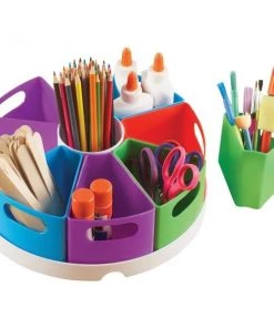 Make a meeting place for creative minds. The Create-a-Space Storage Center brings an easy, convenient way to organize and present everyday "maker" materials in the classroom. This bright and cheerful set includes a 12" circular tray with 8 colorful containers.