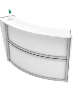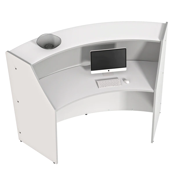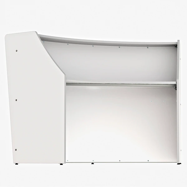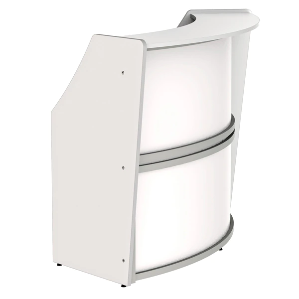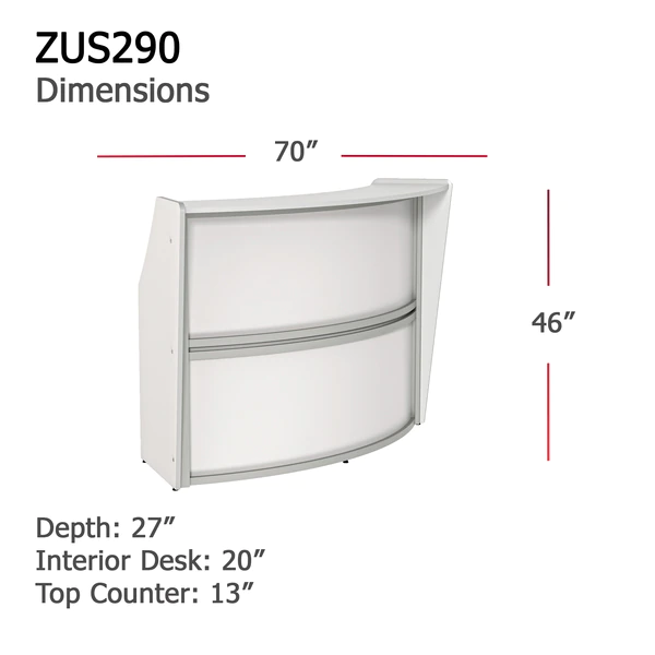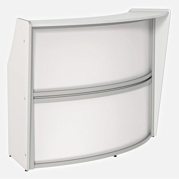 Linea Italia Curved Modern Reception Desk with Counter, Single Panel, Reception Station. Reception Desk Dimensions: 72”W x 32”D x 46”H and 13"D in top counter and 20"D inside table. Strong metal frame and laminated wood body in White finish. Modern, comtemporary design for Lobby, Salon, Office, Hospital, Clinical Center, School, Secretary, Receptionist. Easy to Assembly, no tools required, leveling glides for uneven flooring. Expertly shrink wrapped and packed to avoid damage during transit.