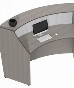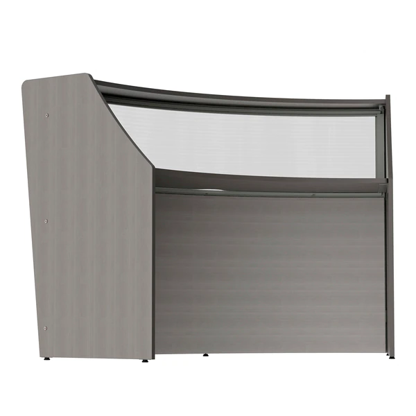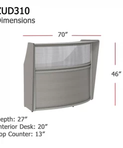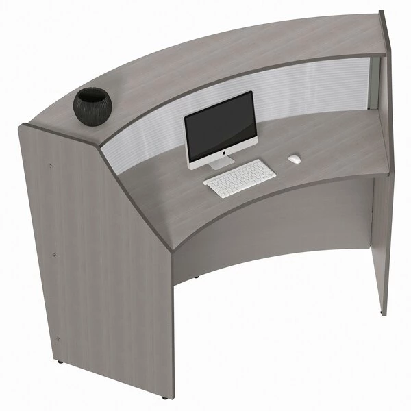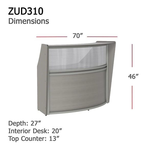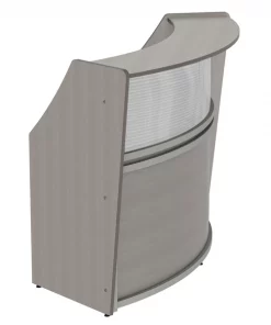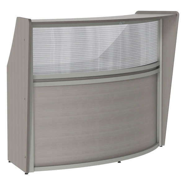 Linea Italia Curved Modern Reception Desk With Counter Clear Panel that allows ligth into desk area. Reception Desk Dimensions: 72”W x 32”D x 46”H and 13"D in top counter and 20"D inside table. Strong metal frame and laminated wood body in Ash finish. Reception station, modern design for Lobby, Salon, Office, Hospital, Clinical Center, School, Secretary, Receptionist. Easy to Assembly, no tools required, leveling glides. Specially wrapped and packed to avoid damage during transit.