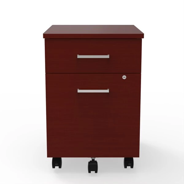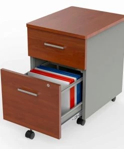 Linea Italia Metal Mobile Pedestal File with front and top Cherry laminate. Pedestal file dimensions: 17”W x 20”D x 24”H. Metal Pedestal Filing Cabinet with Lock & Safety Casters, quick assembly, perfect fit for Under Desk in Home and Office. Expertly shrink wrapped and packed to avoid damage during transit. Our furniture can be built in 10 minutes or less with no tools. Fully assembled but casters.
