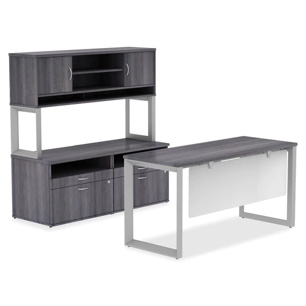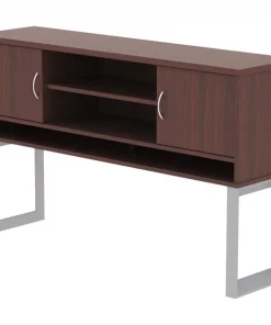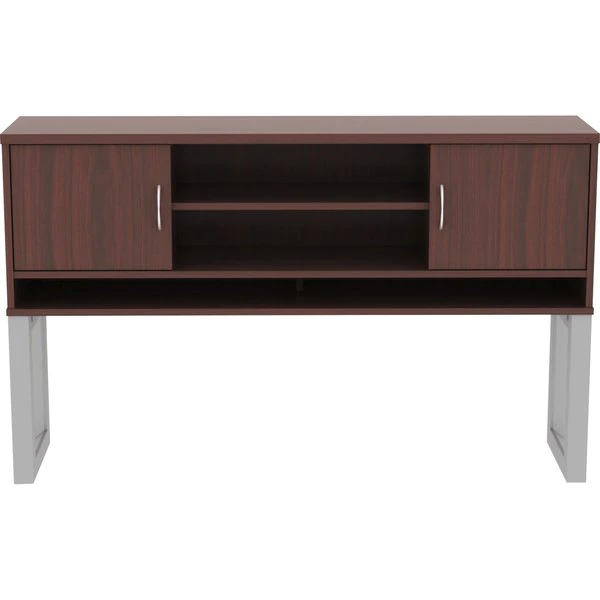 Lorell Relevance Series Mahogany Laminate Office Furniture – 59" x 15" x 36" – 3 Shelve(s) – Material: Metal Frame – Finish: Mahogany, Laminate – Relevance Series offers versatile and stylish office furniture that configures to meet your needs. Choose side legs to suit your needed height – sitting or standing height. The Two-Tier base with narrow feet extends in height from 27" to 46". Choose from different widths and depths of 1" thick laminate tops with edgebanding for a polished, professional look. Adjustable cross bar set works with all desk sizes. You don't have to settle for a traditional pedestal to store supplies and files; this New Series includes a four-drawer file cabinet features side metal frame, leveling feet and silver drawer pulls. For additional innovative storage, the low-file cabinet credenza features an open shelf with two lateral file drawers. The collection also includes hutches with two-piece metal leg frames, tall storage cabinets, a storage cabinet credenza with doors and optional modesty panels.