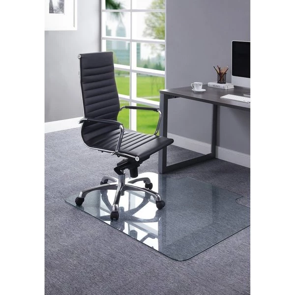 Glass chairmat with a lip offers a durable surface to protect your hardwood floors and carpets. Load capacity is 1,000 lb. The 6mm tempered glass is clear so you can show off your quality flooring or impressive carpet design. Lip on the long edge measures 6" x 23". Chairmat comes with a rubber adhesive pad to prevent slipping.