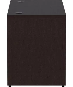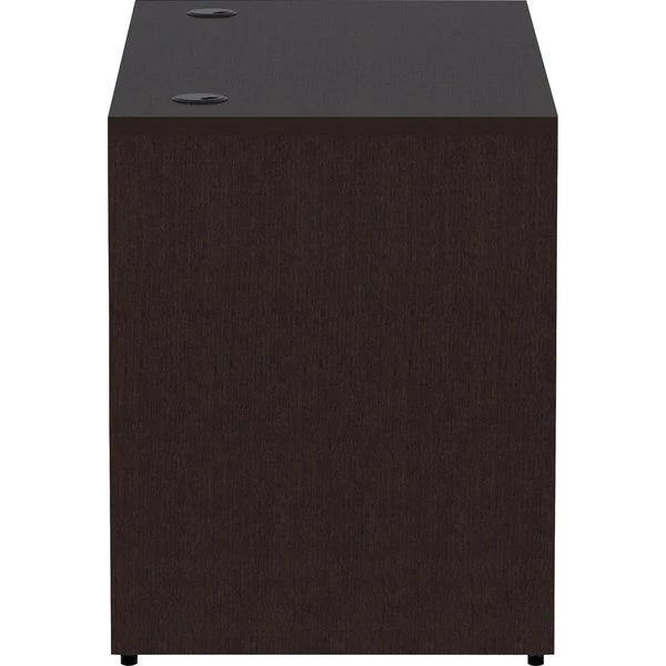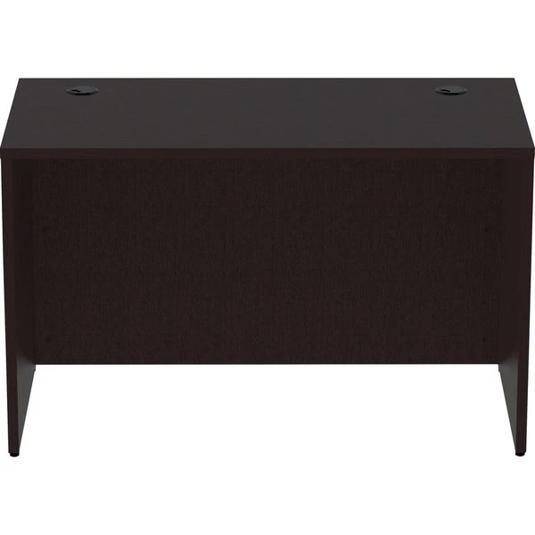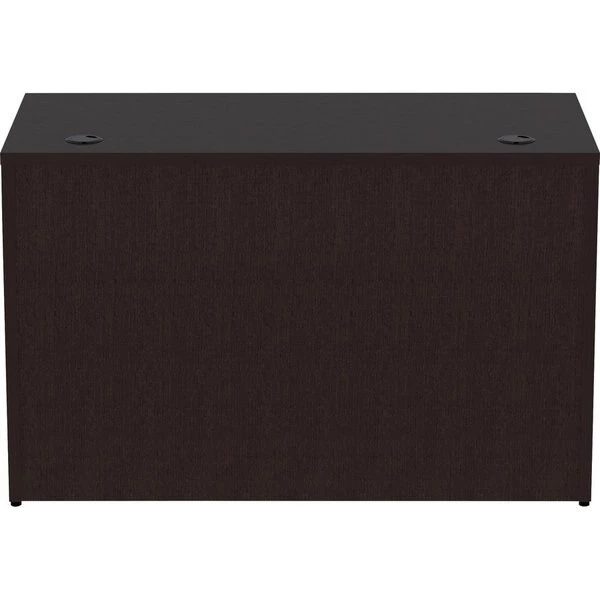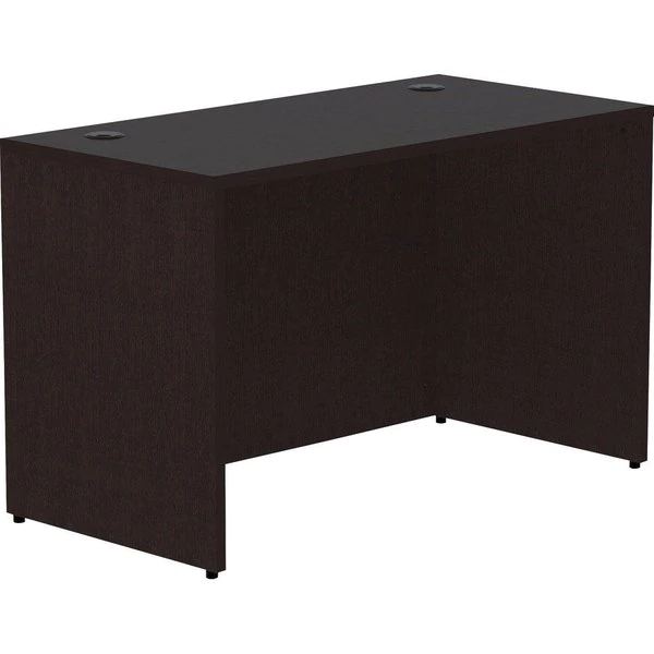 Rectangular desk shell is part of Lorell Essentials Series Laminate Furniture with high-quality laminate construction and metal-to-metal, cam-lock connections. Espresso laminate top is 1" thick for durability and can be used in L-shaped configurations. Use the two grommet holes in the top for easy cord routing. Design also includes a full modesty panel for privacy, 3mm PVC edges and adjustable feet.