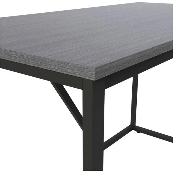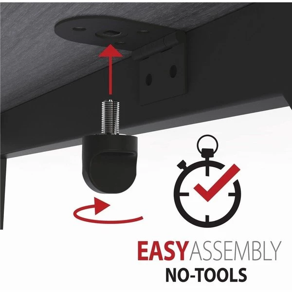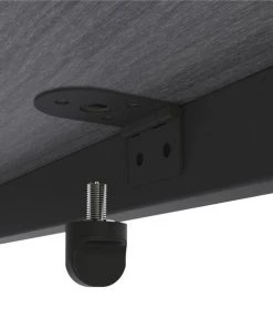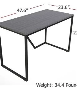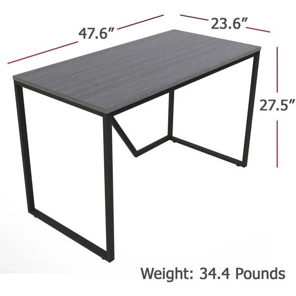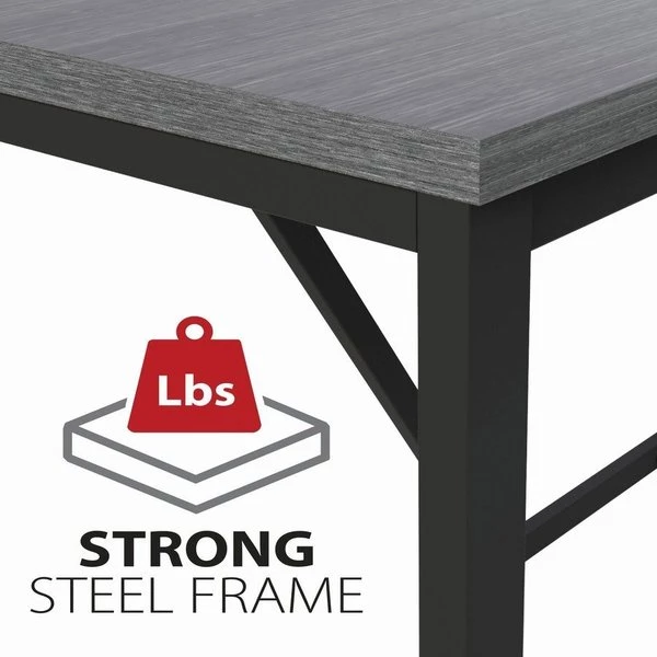 Modern Writing Desk features a simple, clean design that is a perfect solution for a home office or in-home learning. Steel frame in black provides strength and durability while the leveling guides ensure stability on any type of floor surface. Solid laminate wood top offers a 200 lb. capacity that can hold your computer, printer or other heavy objects with ease. Gray laminate is scratch-resistant and liquid-resistant. This desk is easy to set up and can be assembled without tools in minutes.