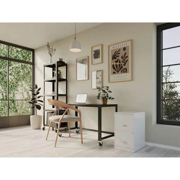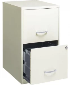 SOHO File Cabinet is the perfect-sized filing solution for a small or home office. It features two locking file drawers with smooth-glide suspension to store your important, moderately used documents. Full high-side drawers accommodate letter-size, hanging file folders. The lock secures both drawers. Design also includes an 18" depth, plastic pull handles and steel construction with a baked enamel finish.