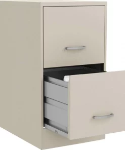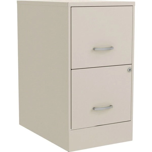 SOHO File Cabinet features two locking file drawers with smooth-glide suspension to store your important, moderately used documents. Full high-side drawers accommodate letter-size, hanging file folders. The lock secures both drawers. Design also includes a 22" depth, chrome pull handles and steel construction with a baked enamel finish.