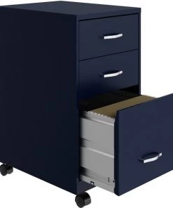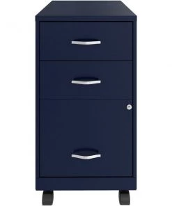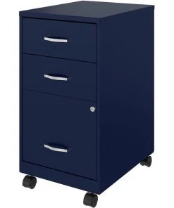 Part of the Lorell SOHO Collection, this 3-Drawer Organizer Metal File Cabinet is perfect for storing files, supplies and accessories for your small office or home office. With one file drawer and two storage drawers, it features a smart, efficient design that works well in small spaces and fits under most worksurfaces or desks. Each drawer features high sides to accommodate letter-size hanging files. Store your office essentials in the top two accessory drawers. The included four wheels are both stylish and functional, making it easy to move around your home or office. With the wheels, the file cabinet is 24-1/2" high. Using a patented glide suspension, the drawers have a smooth open and close slide with a 3/4 drawer extension to prevent tipping. Built-in lock for the bottom two drawers keeps your files and select possessions secure.