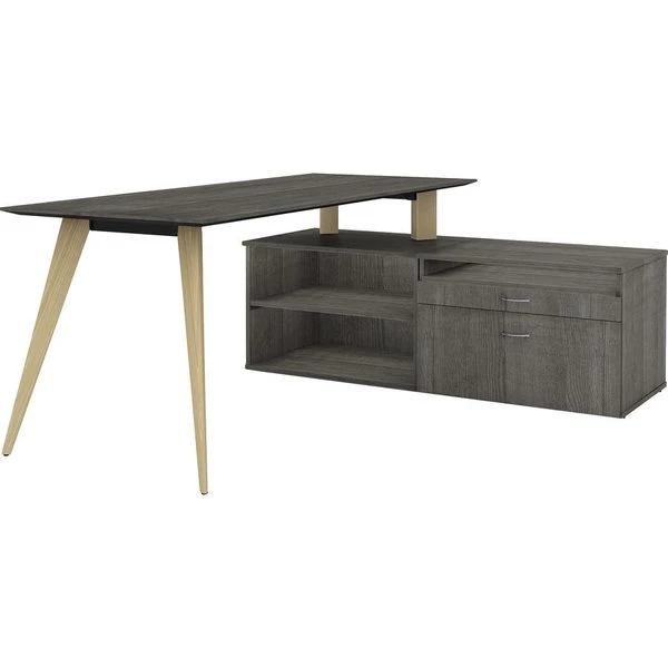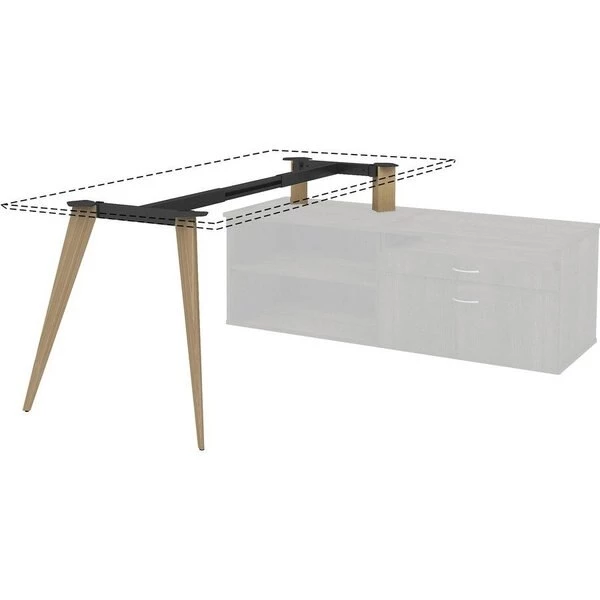 Natural wood desk frame provides the foundation for tabletops/desktops in the Lorell Relevance Series, versatile and stylish office furniture that configures to meet your needs. This short frame on one side adds a special, space-saving dimension to your office configurations, letting you set up at least one side of a tabletop/desktop over a cabinet credenza (both sold separately). Adjustable leveling feet help keep the full-length frame even on uneven surfaces. Natural solid wood legs add another layer to your decor when you pair it with Mahogany, Walnut and Weather Charcoal laminate tabletops (sold separately). The metal cross bar offers reliable stability. Desk frame adjusts to support 60" x 30" and 72" x 30" L-shaped desks.