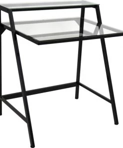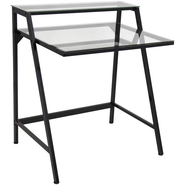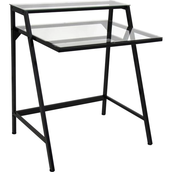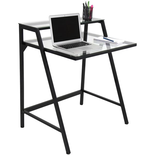 Straighten out your workspace while remaining stylish. The 2-Tier Desk is the perfect solution to a clutter-free workspace, with an additional shelf for storage and stylish metal legs supporting a chic glass top. This piece is sure to impress in either of its two color choices.