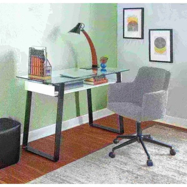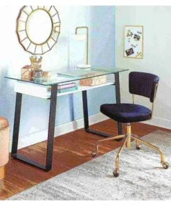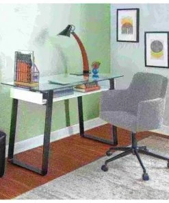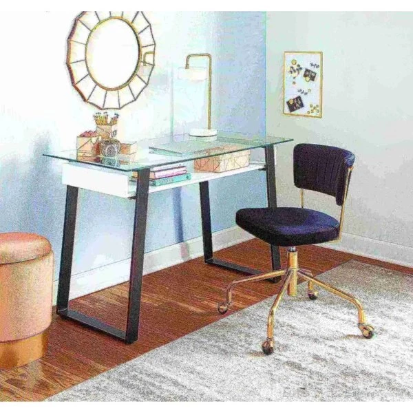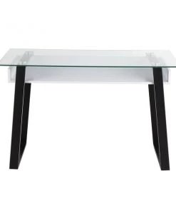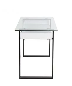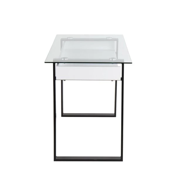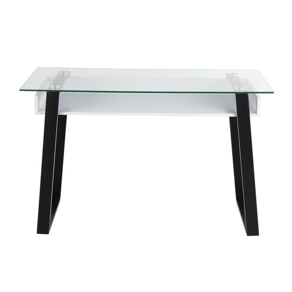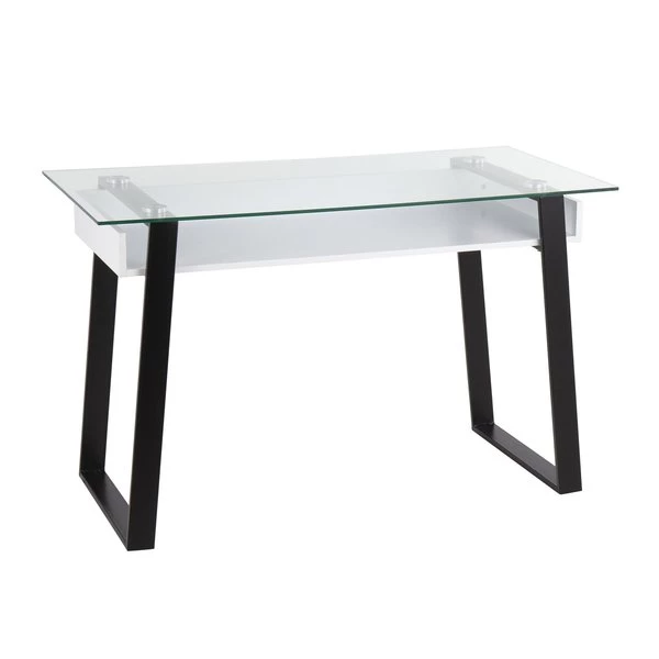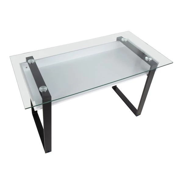 Tackle your daily home office tasks in style with the sleek design of the Duke Desk by LumiSource. This stylish desk features rectangular metal legs, an expansive tempered glass work surface, and a generously sized see-through cubby, perfect for all of your supplies. Choose from a variety of color combinations to match your contemporary home decor!