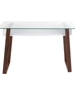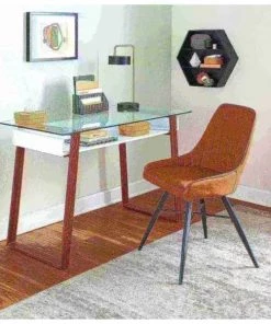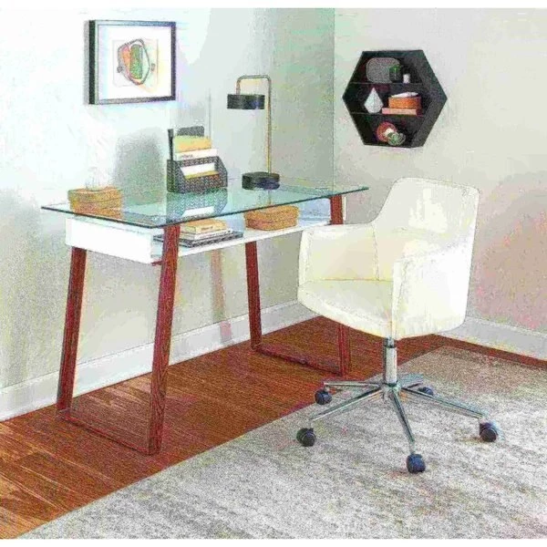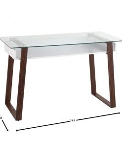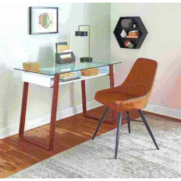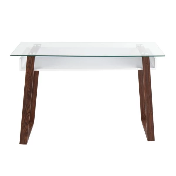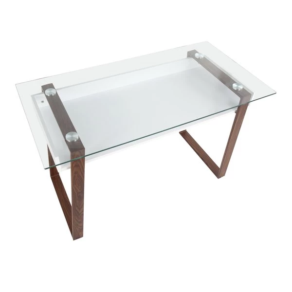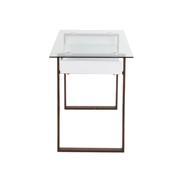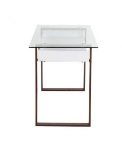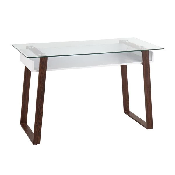 Tackle your daily home office tasks in style with the sleek design of the Duke Desk by LumiSource. This stylish desk features rectangular metal legs, an expansive tempered glass work surface, and a generously sized see-through cubby, perfect for all of your supplies. Choose from a variety of color combinations to match your contemporary home decor!