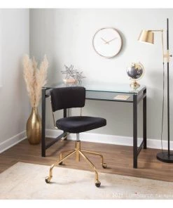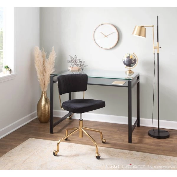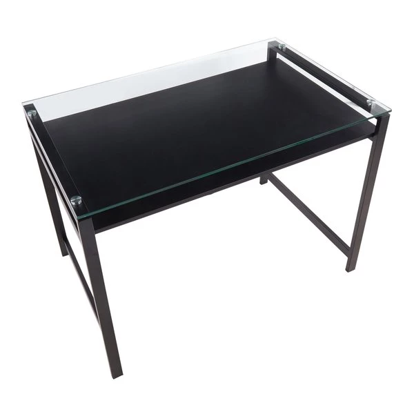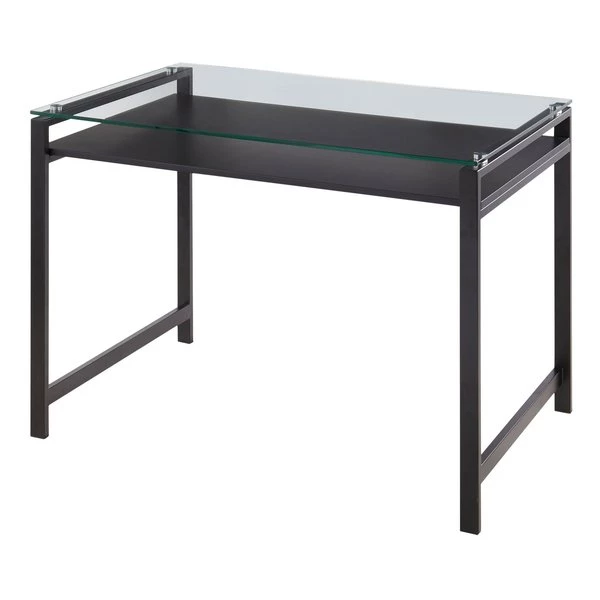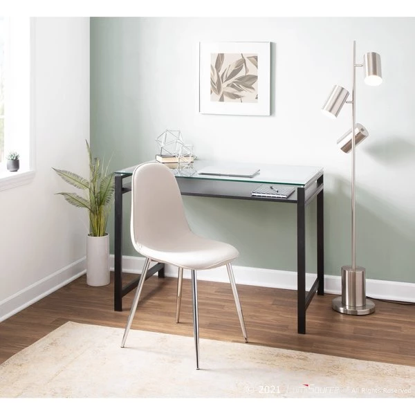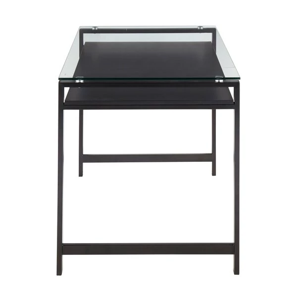 Featuring a gorgeous glass top, floating wood shelf, and metal legs, the Hover Desk by LumiSource will make a beautiful statement in any office setting. The contemporary design of this elegant desk makes it not only functional, but stylish as well! Available in several finishes, choose the one that suits your space best.