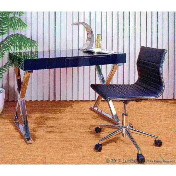 Add glamour to your work space with the beautiful gloss finish of the Luster Desk. A thick desk top and pullout drawer provide an optimal work space, while supporting chrome-finished X-shaped legs add a truly stylish appeal. Available in various colors, choose the one that suits your space best!