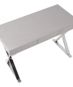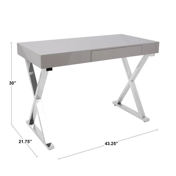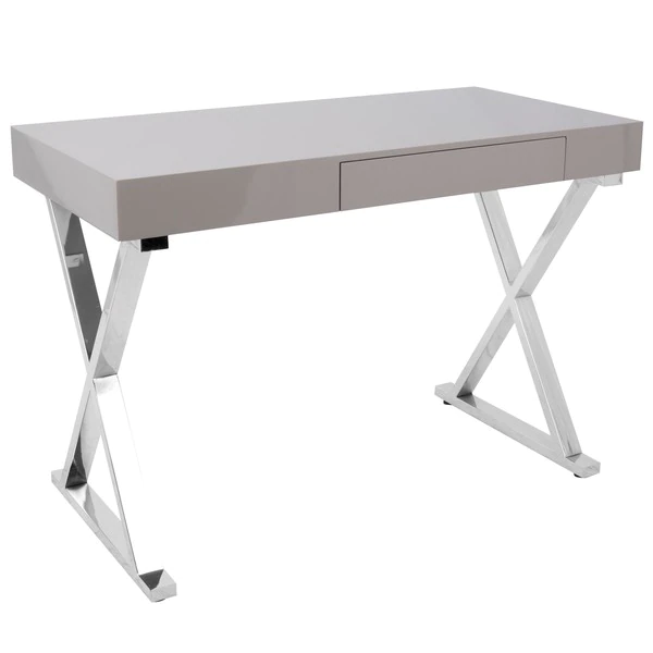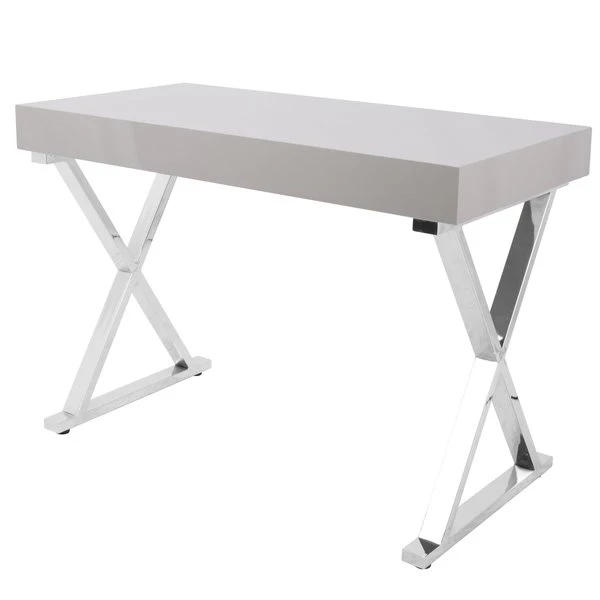 Add glamour to your work space with the beautiful gloss finish of the Luster Desk. A thick desk top and pullout drawer provide an optimal work space, while supporting chrome-finished X-shaped legs add a truly stylish appeal. Available in various colors, choose the one that suits your space best!