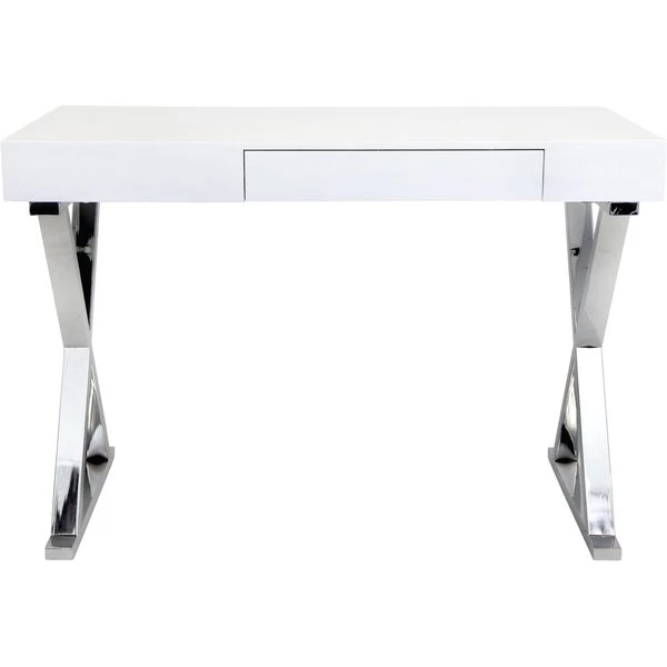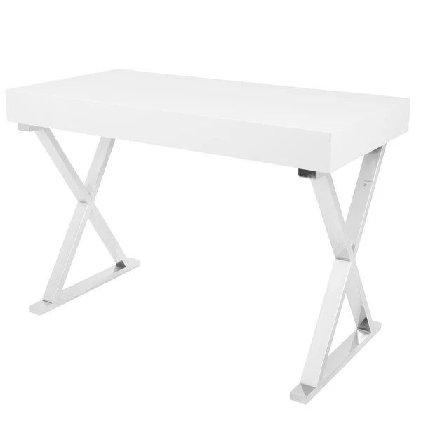 Add glamour to your work space with the beautiful gloss finish of the Luster Desk. A thick desk top and pullout drawer provide an optimal work space, while supporting chrome-finished X-shaped legs add a truly stylish appeal. Available in various colors, choose the one that suits your space best!