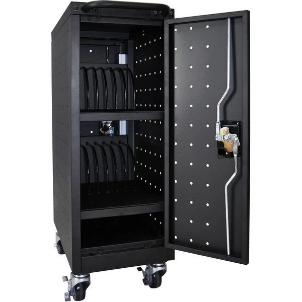 Luxor 16 Tablet & Chromebook Charging Cart Luxor Tablet / Chromebook Charging Carts safely charge, store and transport tablets and Chromebooks to meet the evolving IT needs of classrooms and dynamic work environments. A strong, simple design with lockable steel doors provides rugged security and storage while inside, an electrical assembly and cord management system keep things organized and charged up. Rubber-coated dividers wonâ€TMt scratch devices and help provide impact protection during transit, which is made easy even when fully loaded thanks to rolling casters and a full-length handle. And the cabinet requires minimal assembly – simply attach the casters and handle.
